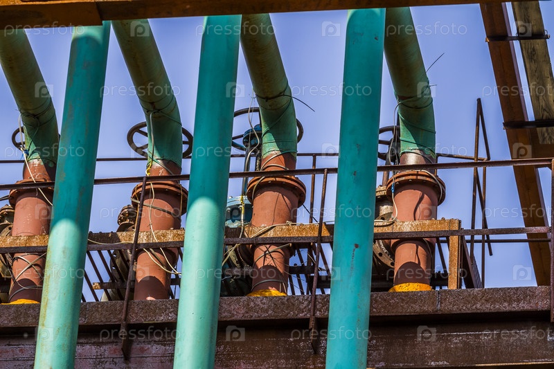 Ржавые и зеленые стальные трубы на заводе