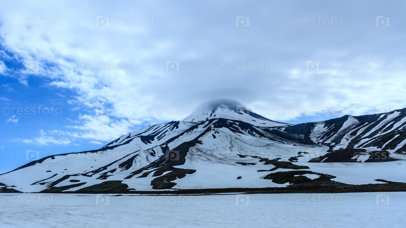 Авачинский вулкан. Лентикулярные (линзообразные) облака над вулканом. Полуостров Камчатка, Россия