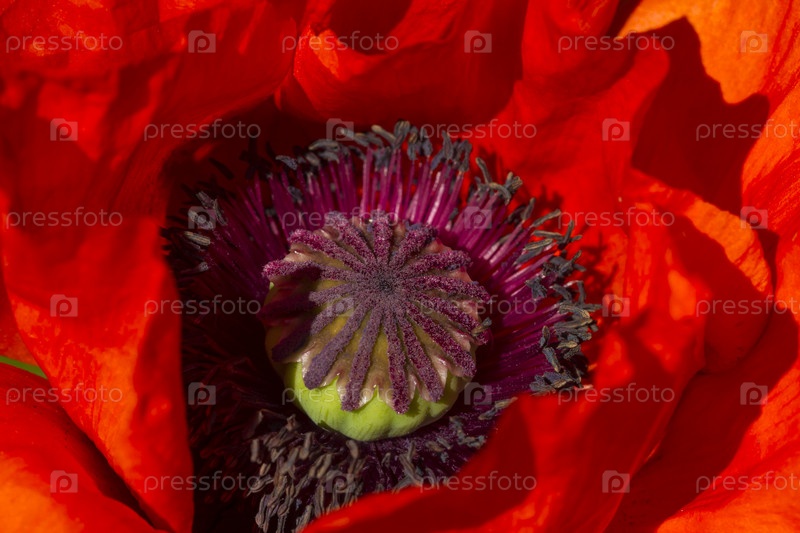 Головка цветка красного мака. Изображение макроса. Воздушное нежное софт-арт изображение. Выборочный фокус