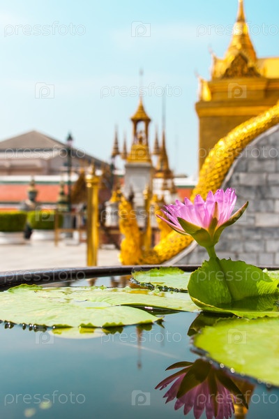Розовый цветок лотоса в пруду возле Большого дворца Бангкок, Таиланд