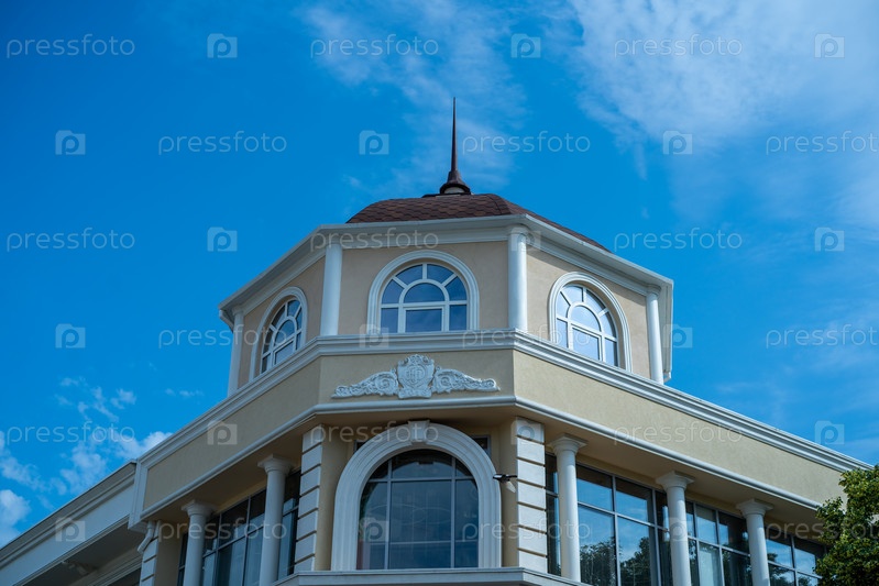 Симферополь, Крым - 23 июня 2021 г.: Красивое историческое здание на фоне голубого неба