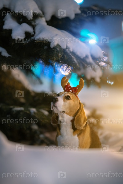 Бигль в ночном городе
