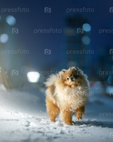 Померанский шпиц зимой