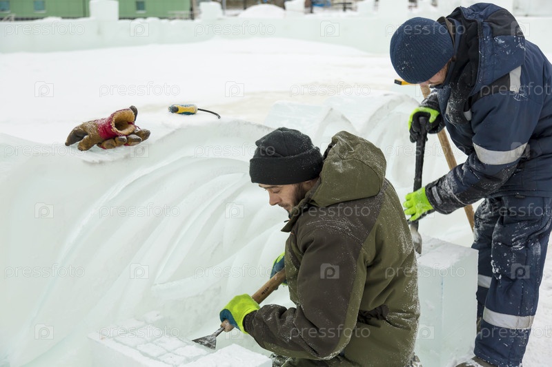Монтажники на строительстве ледового городка