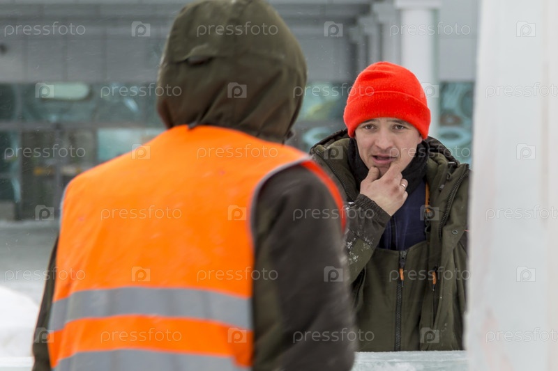 Рабочие на монтаже ледового городка