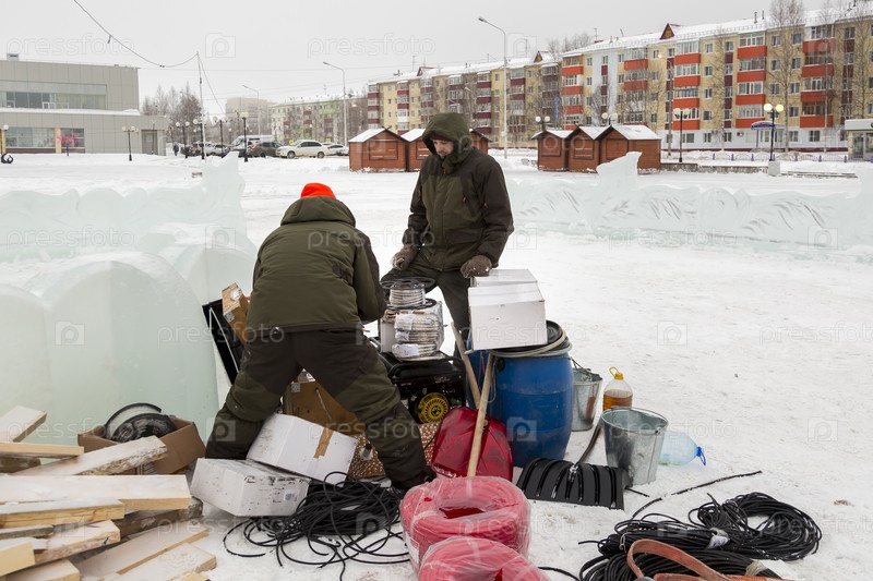 Рабочие собирают силовой кабель для освещения