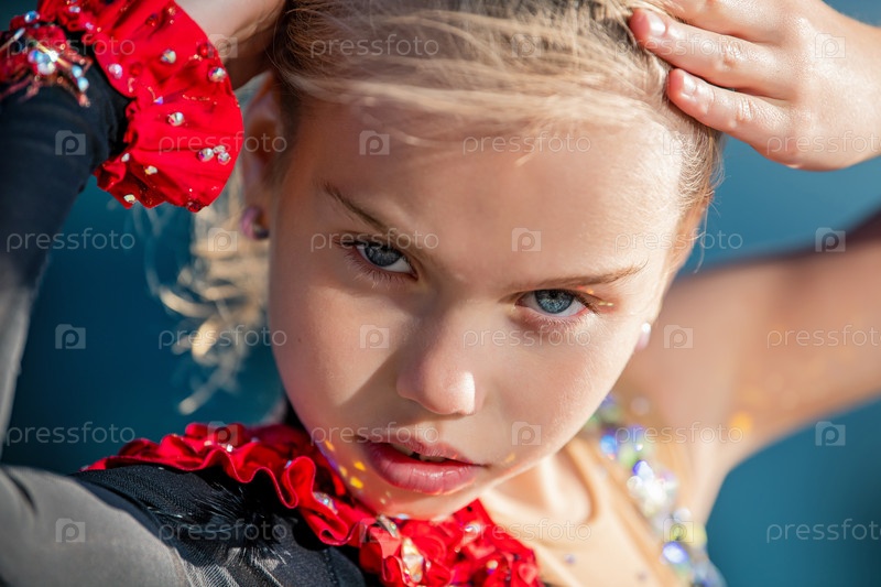 Портрет девушки-гимнастки, исполняющей темпераментный танец