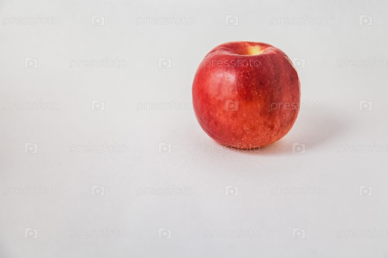 Красное яблоко на белом фоне, обтравочный контур, полная глубина резкости