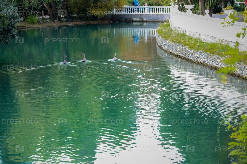 Семейство уток, утка и ее маленькие утки плавают в воде. Утка заботится о своих новорожденных утках. Утки все вместе включены. Кряква, лат. Утки Anas platyrhynchos плавают в пруду