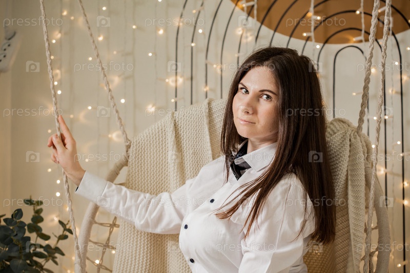 Красивая женщина на качелях дома