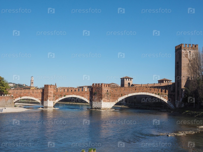 Понте-ди-Кастельвеккьо (имеется в виду Мост Старого Замка), также известный как Понте Скалиджеро (имеется в виду Мост Скалигеров) через реку Адидже в Вероне, Италия