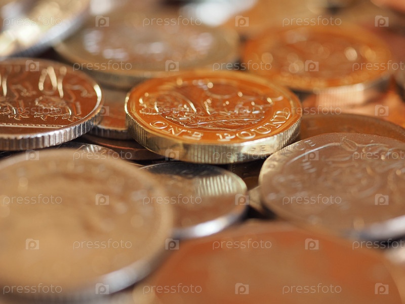 Монеты фунта (GBP), валюта Соединенного Королевства, полезная в качестве фона