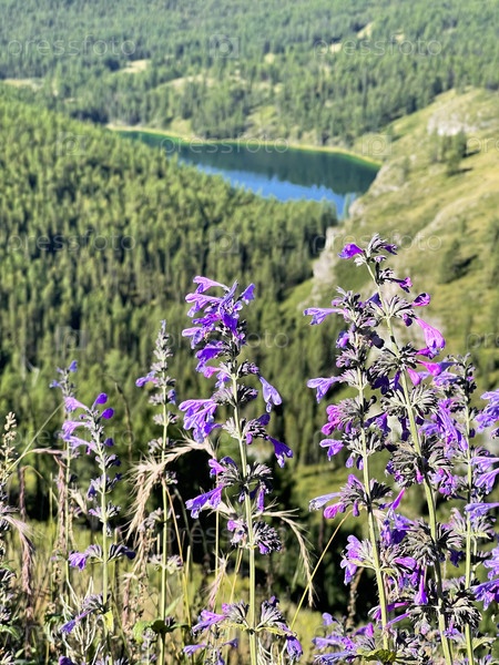 Полевые цветы на фоне горного озера