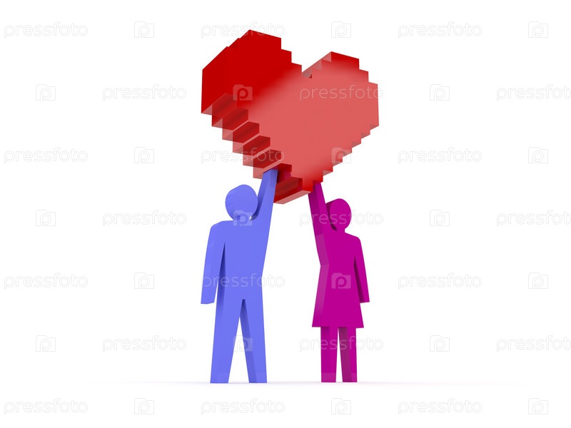 Мужская и женская фигуры, держащие сердце.Концептуальная 3D-иллюстрация