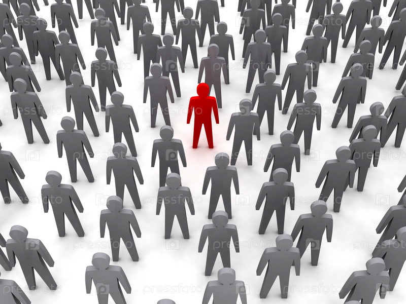 Уникальный человек в толпе. Концептуальная 3D-иллюстрация