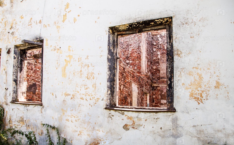 Два разбитых окна в заброшенном доме