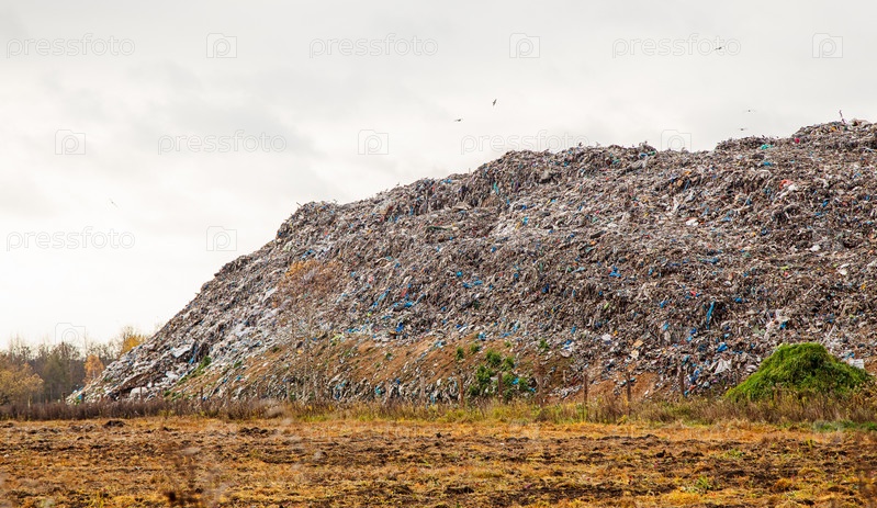 Огромная куча мусора на городской свалке