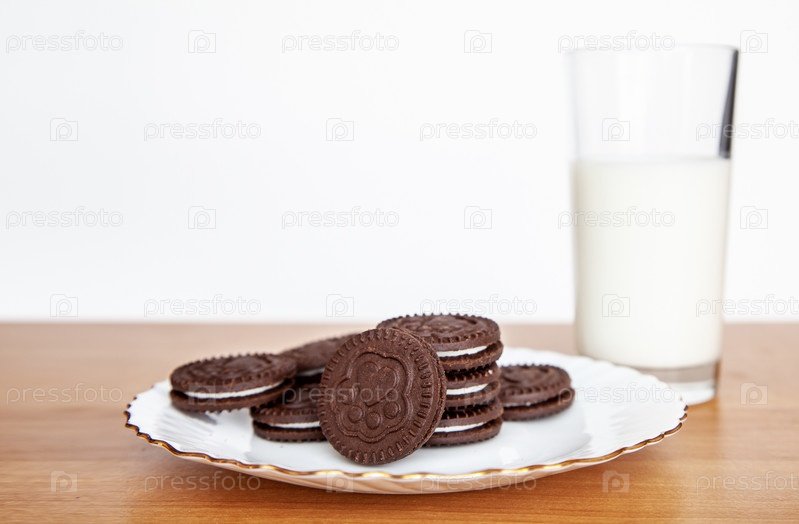 Тарелка с печеньем и стакан молока на столе