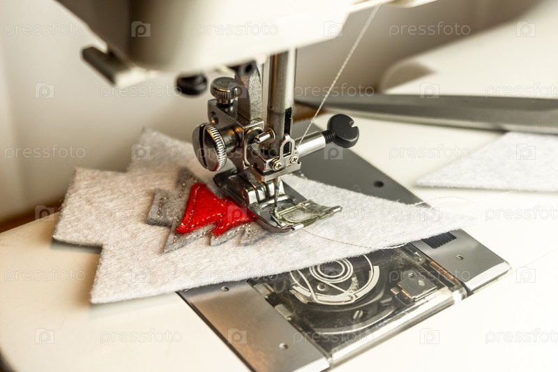 Швейная машинка в процессе сшивания деталей серебряными нитками