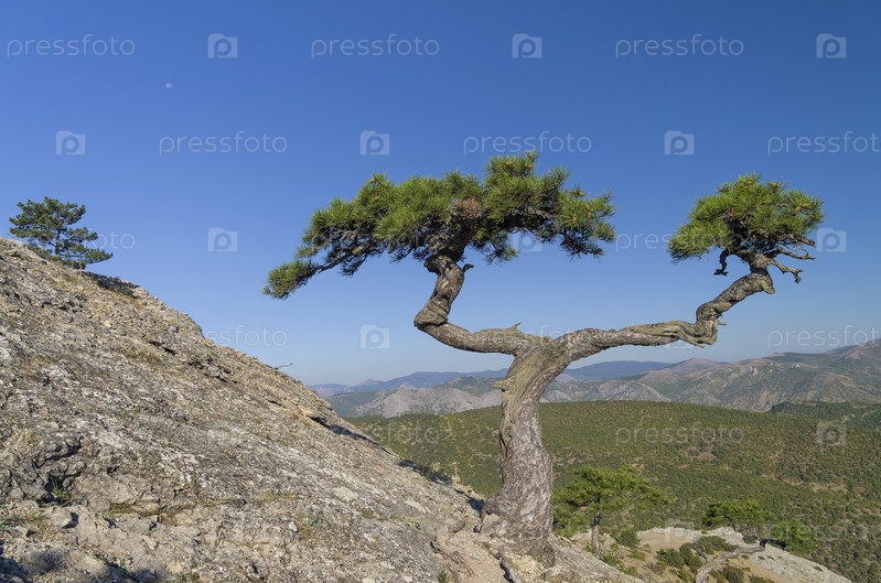 Релииктовая сосна причудливой формы на скале. Крым, гора Сокол, между Судаком и Новым Светом