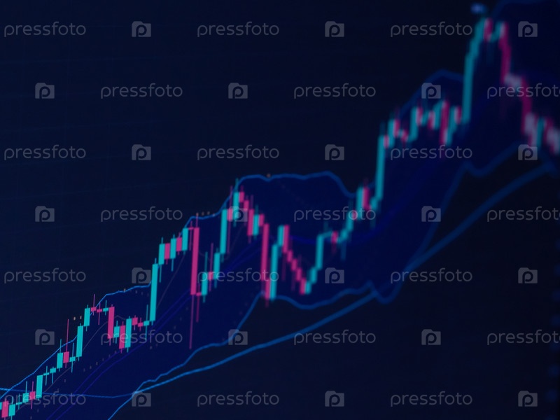 Расфокусированная свечная диаграмма с индикатором, показывающим восходящий или нисходящий тренд на фондовом рынке или онлайн-торговле акциями, инвестициях и финансовых концепциях