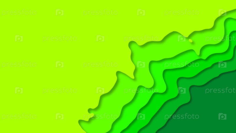 Зеленый многослойный фон. Монохроматический цвет. Стиль вырезанных из бумаги форм. Абстрактный шаблон