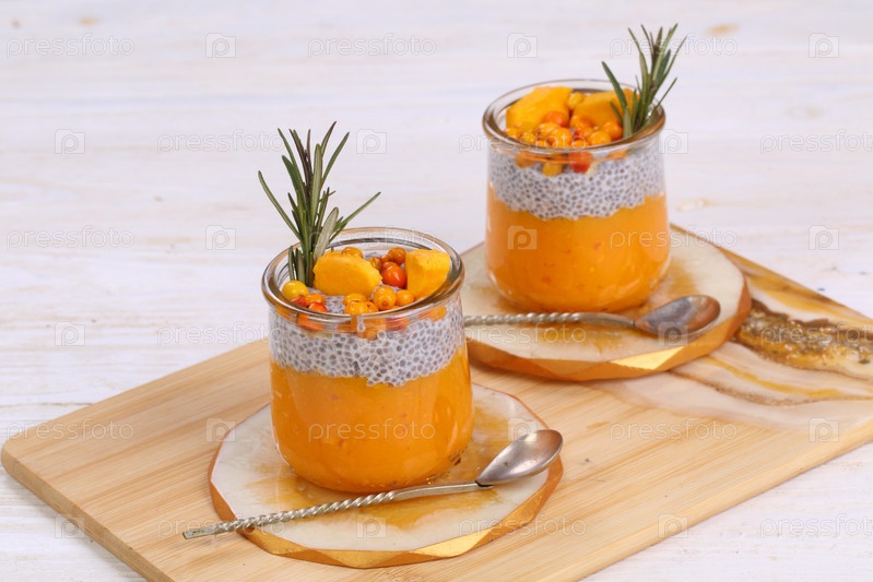Десерт с чиа на деревянном фоне