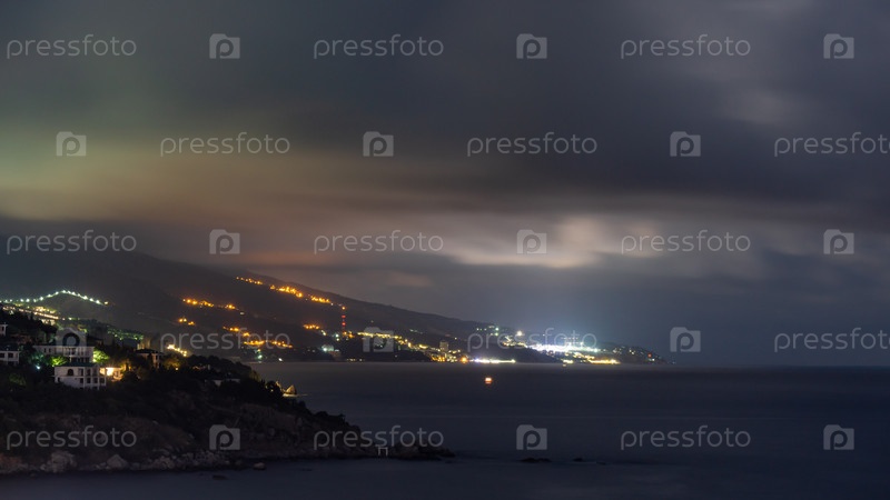 Вид с фороса на восточную часть береговой линии в ночных огнях 2