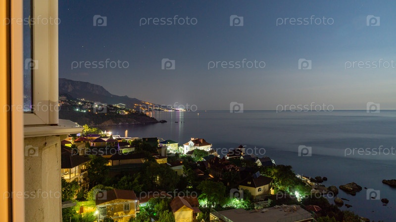 Вид с фороса на восточную часть береговой линии в ночных огнях 8