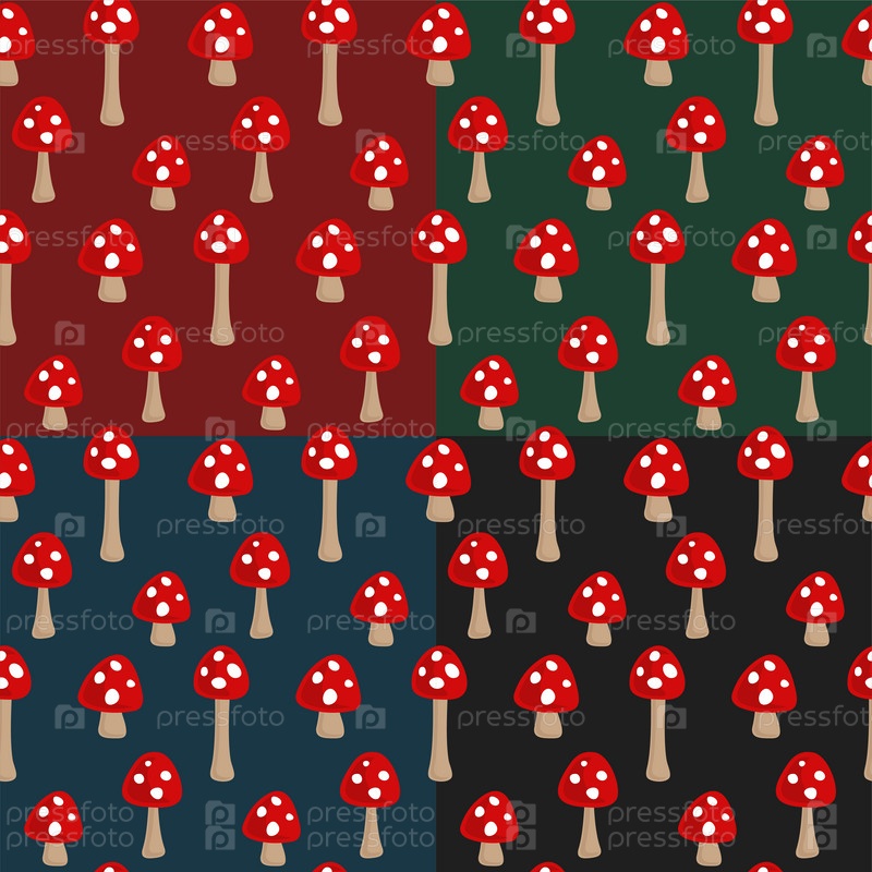 Набор бесшовных фонов с лесными грибами