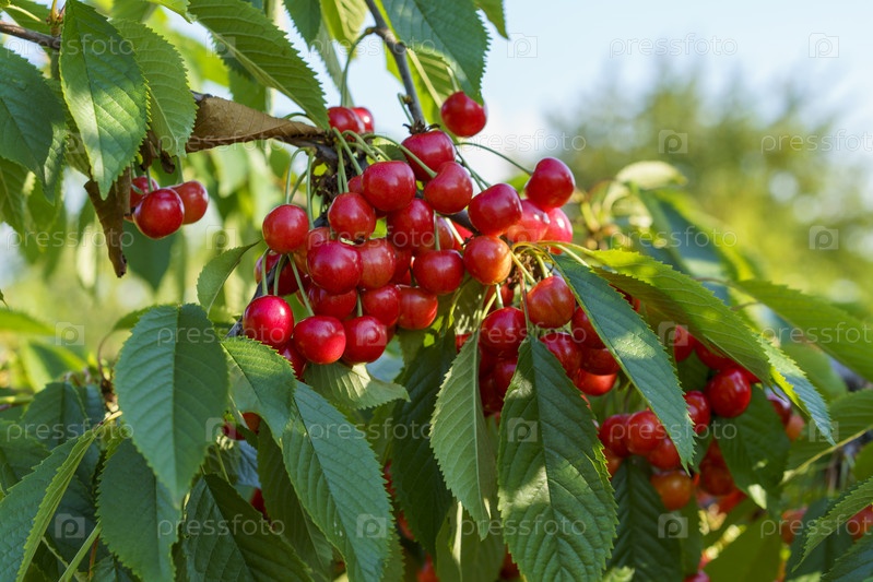 Спелые черешни на дереве