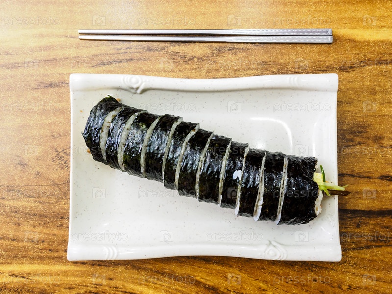 Кимбап (Gimbap) на столе, самая популярная корейская еда
