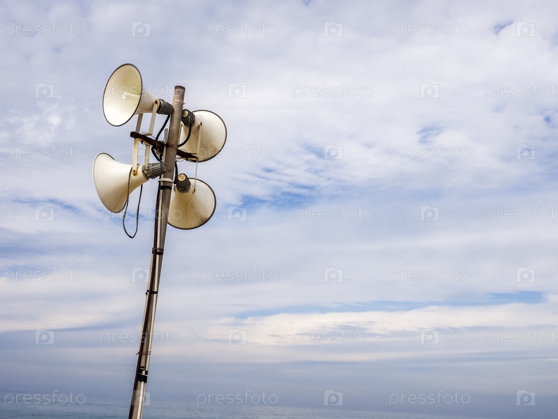 Громкоговоритель на пляже Тель-Авива для получения информационных новостей и предупреждений. Израиль