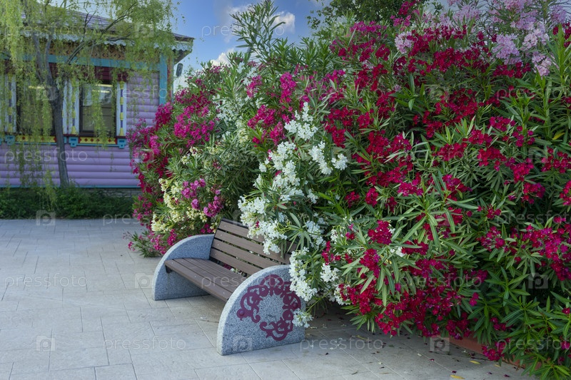 Фон с цветущим кустом олеандра в парке
