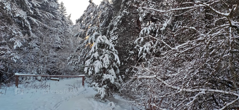 Зимний пейзаж в горах крупным планом в лесу