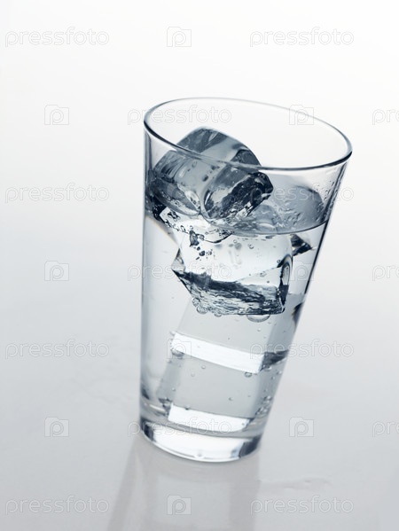Стакан минеральной воды со льдом