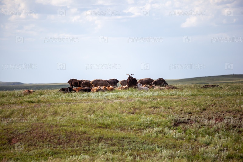Стадо баранов на лугу