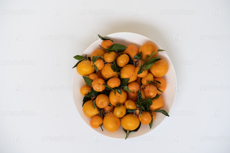 Оранжевые мандарины лежат на тарелке