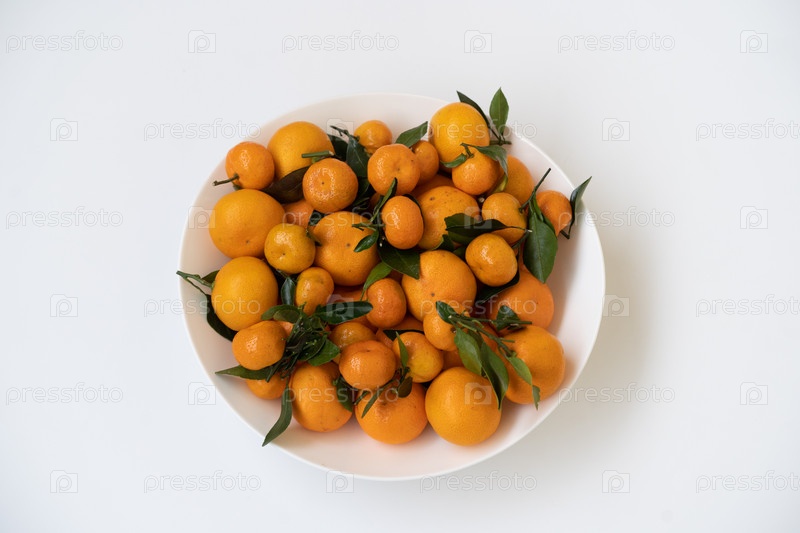 Оранжевые мандарины лежат на тарелке