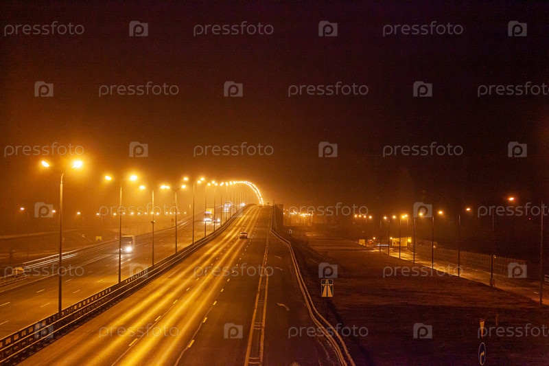 Ночная дорога в тумане