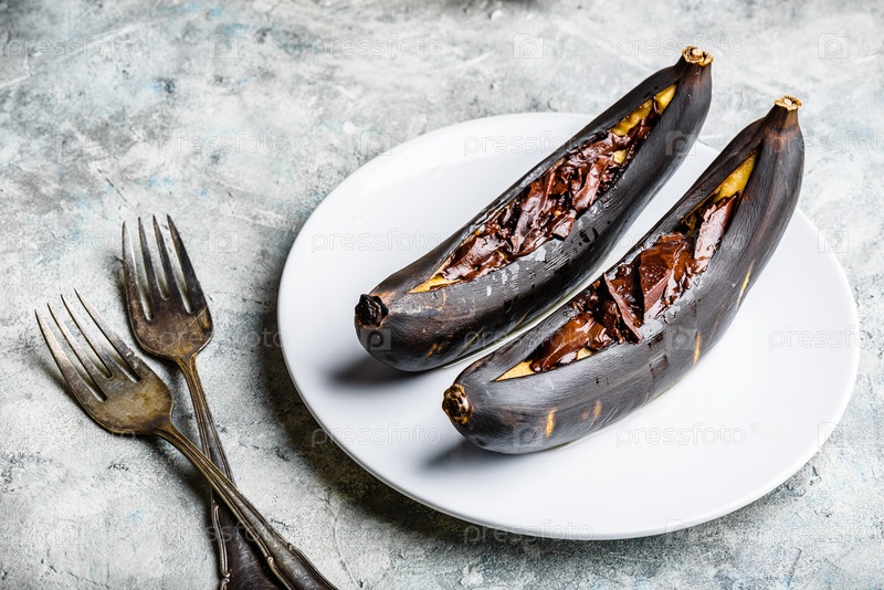Бананы на гриле с темным шоколадом