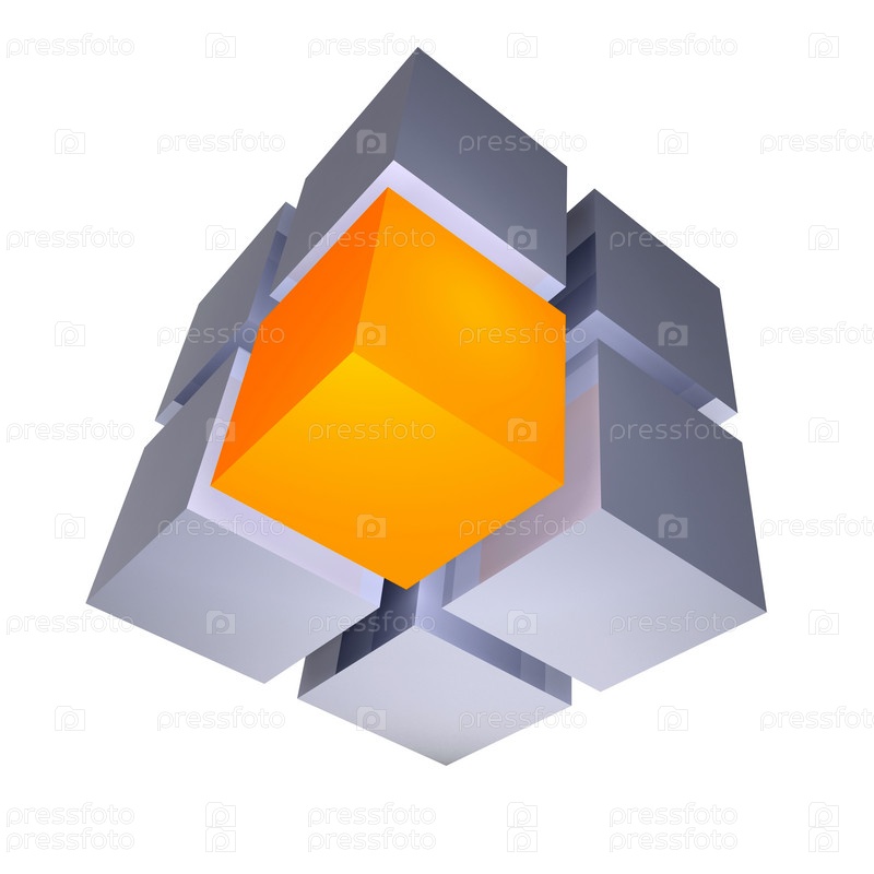 Куб с уникальным сегментом. Концептуальная 3D-иллюстрация