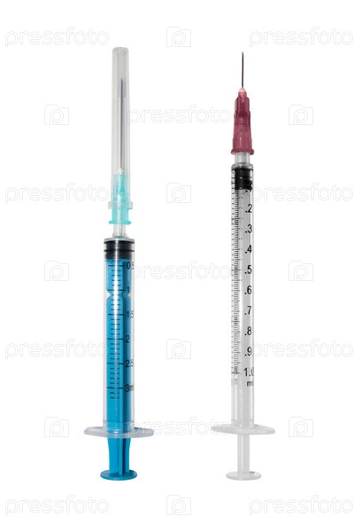 Одноразовый медицинский шприц с иглой.A disposable medical syringe with a needle