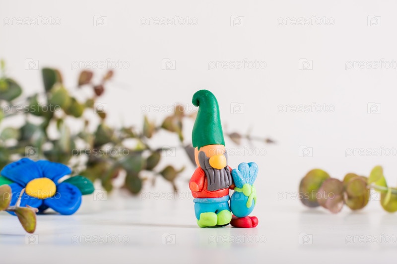 Гномик из полимерной глины на светлом фоне. Декор ручной работы