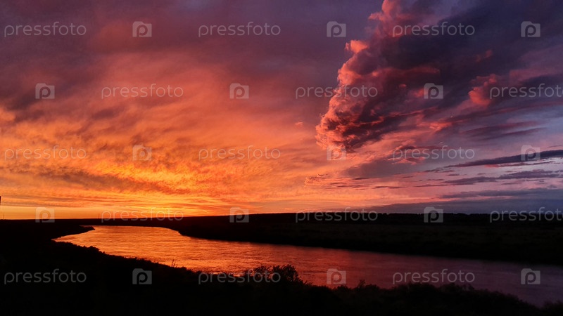 закат на реке