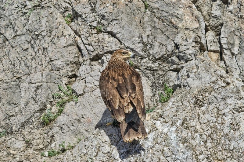 Портрет хищной птицы на фоне скалы