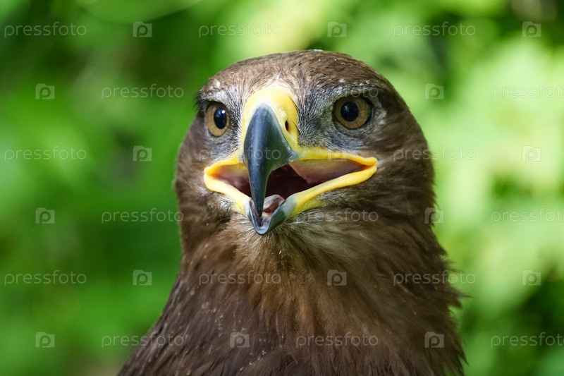 Большая хищная птица на зеленом естественном фоне