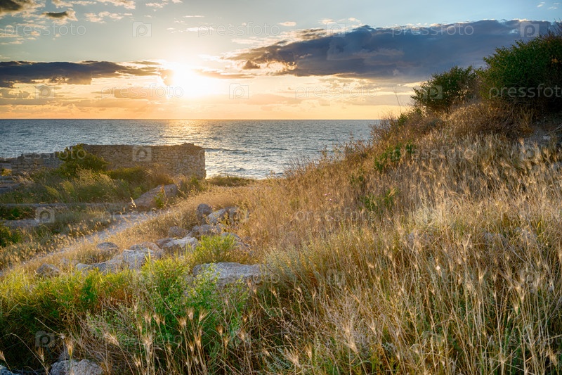 Закат над морем в древнем городе Херсонес