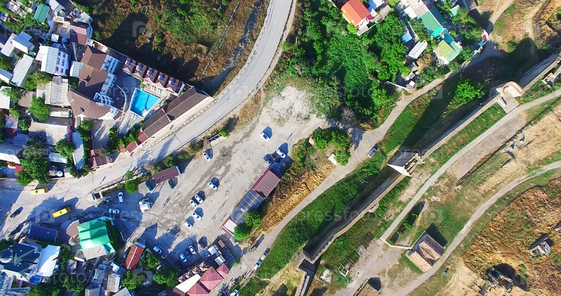 Вид с воздуха на улицы города и Генуэзскую крепость. Судак, Крым