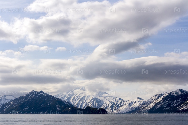 Красивый вид на вулкан Вилючинский из океана, полуостров Камчатка, Россия